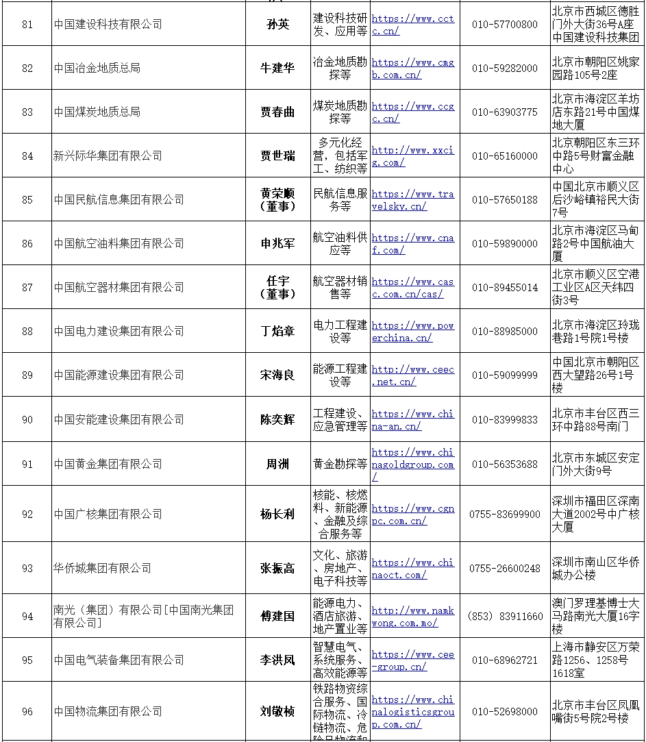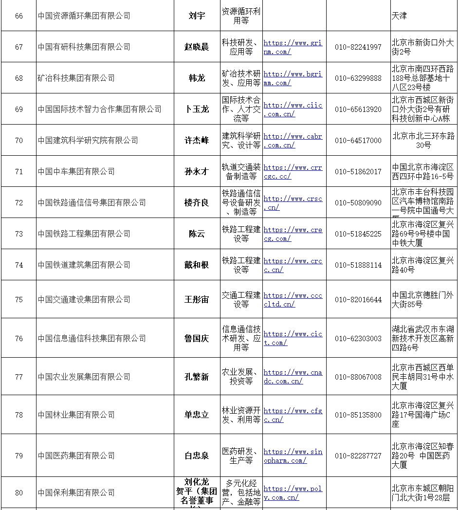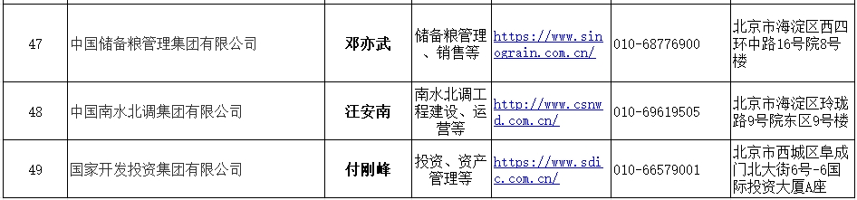 Latest List of Central State-owned Enterprises